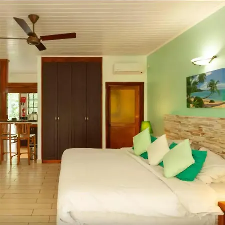 A strandtól egy 1 km-es távolságra található 4 csillagos La Digue Self-Catering Apartments hotel kertre néző szobákat kínál.